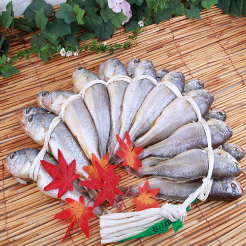 상품명 : [ 100% 국내산 참조기 ] [선물용] 통보리굴비 3호( 20 마리 / 건조전 18~19 cm / 건조후1~2cm 줄어듭니다 )